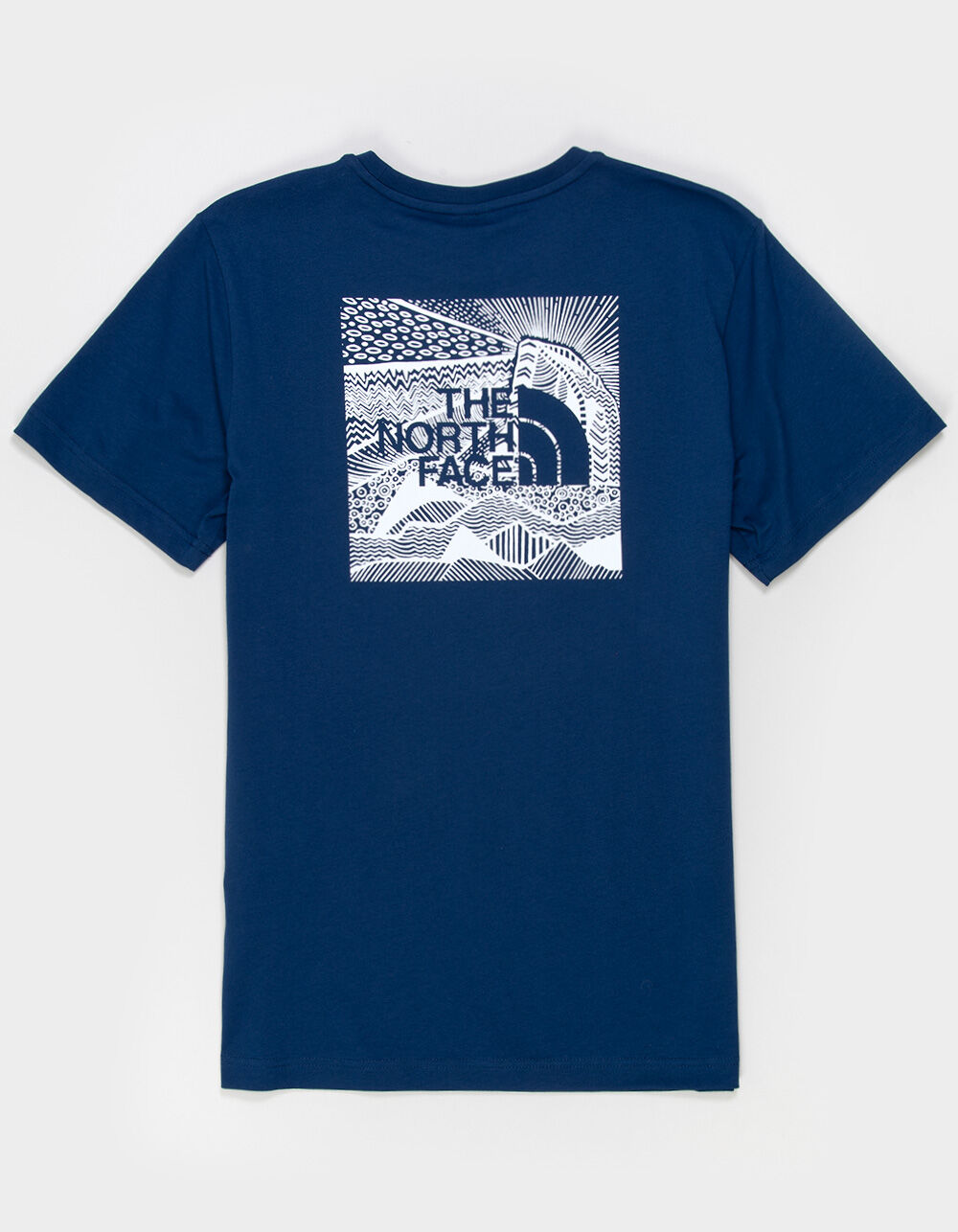 A navy unisex tee with front pocket graphic and large back graphic, made from 100% cotton.