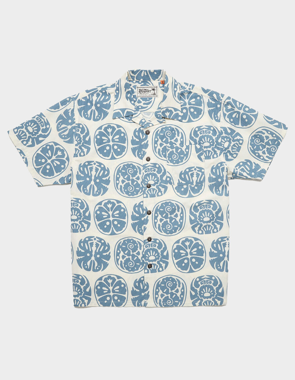 A breathable tri-blend button-up shirt with an allover print, enzyme wash, and chest pocket.
